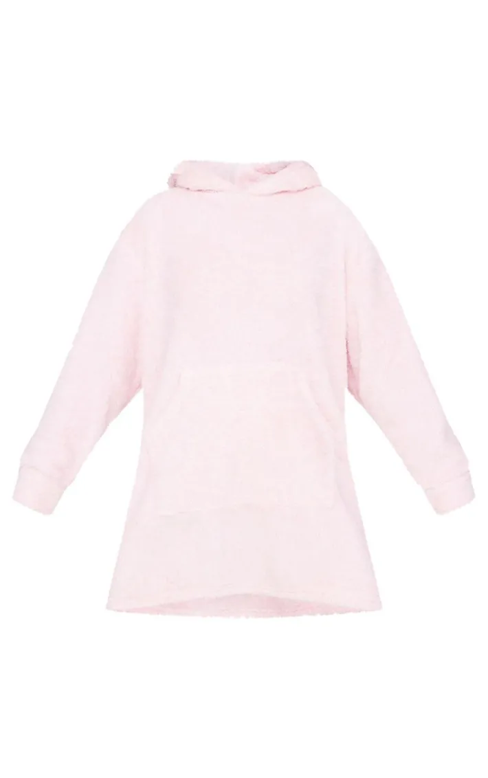 Give your lazy Sundays a new level of comfort with this hooded blanket. Featuring a pink borg material with sleeve holes and a hooded design, we are obsessed. Just add a pair of PJs and fluffy slippers to complete the look.