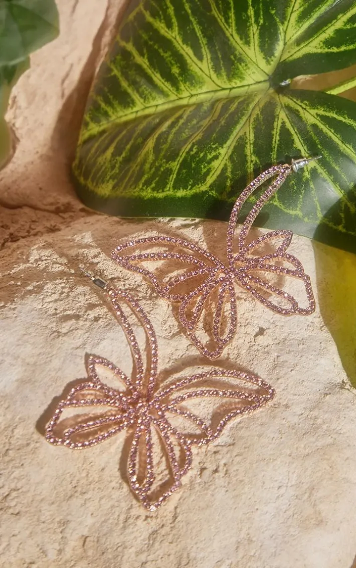 Take your outfit to a whole new level with these pink butterfly diamante statement earrings. Brought to you in a pink material with a butterfly print design and diamante detailing for that extra touch of luxe, how can you not fall in love? Style these butterfly earrings with any look for a statement finishing touch.