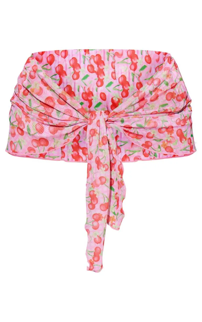 Earn all the compliments this season with this pink cherry print mini mesh beach sarong. Brought to you in a pink cherry print mesh material with a mini length, this sarong will turn heads. Style with the matching pieces, your fave sandals and accessories for a look that will never miss.