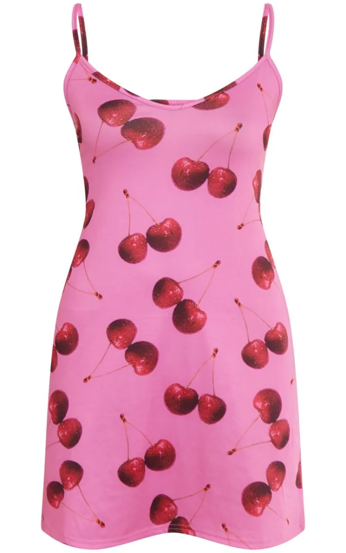 Bring all the fruity vibes to your wardrobe this season with this pink cherry print strappy shift dress. Brought to you in a pink material with a cherry print design and strappy detail, how can you resist? Style this shift dress with pink flatform sandals and a pink bag for a look we’re obsessing over.