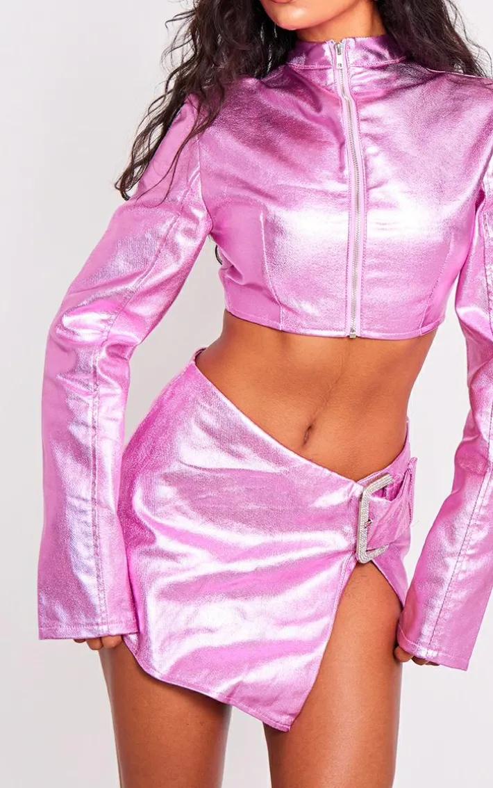 Dare to stand out from the crowd in this statement pink diamante buckle denim mini skirt, you’re sure to be earning all the compliments. With a pink denim material, a diamante buckle detail and a figure-worshipping fit, this mini skirt will have you at the center of attention. Style it with a matching top, slip-on heels and your fave accessories for a fiercely feminine finish.