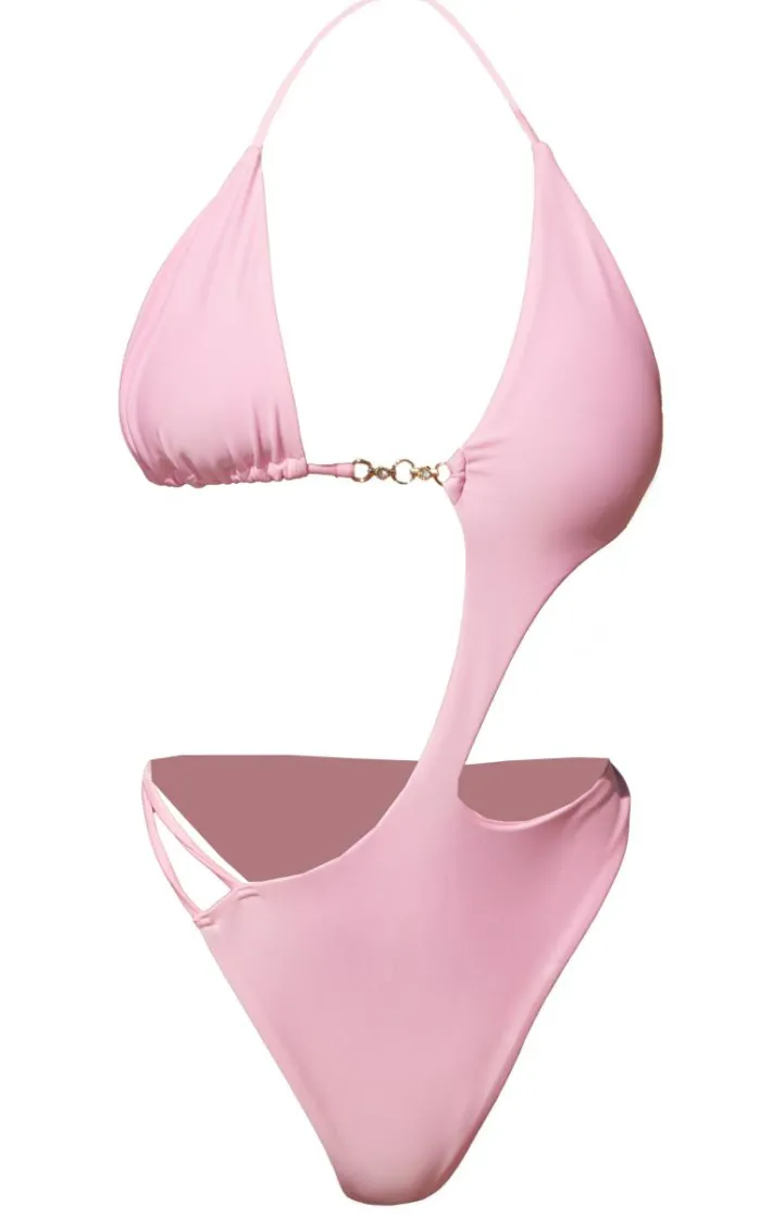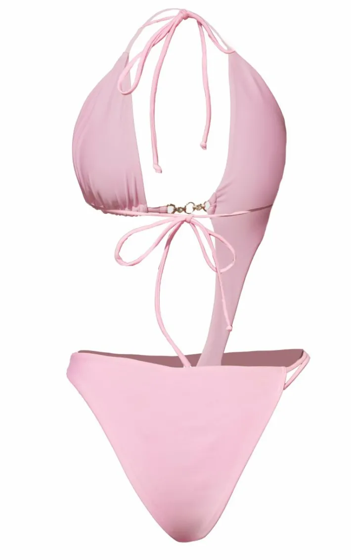 Add a pop of pink into your vacay wardrobe with this pink diamante trim cut out swimsuit. This swimsuit is brought to you in a pink hue with a diamante trim and a cut out design, what’s not to love? This swimsuit is calling your name. Simply style with the matching bikini bottoms, sandals and accessories for a look that won’t let you down.
