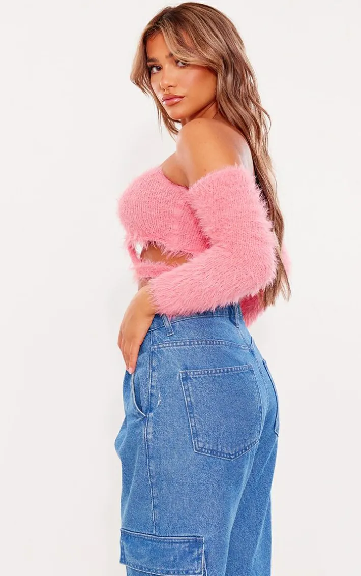 Add a little edge to your new season wardrobe with this pink eyelash knit cut out long sleeve top, you won’t be able to resist this statement piece. With a pink eyelash knit material, a cut out design and long sleeves, this top will have you showing off your confident side. Team it with some blue jeans and your fave accessories for a next level look.