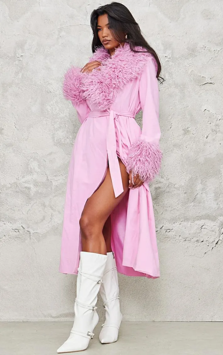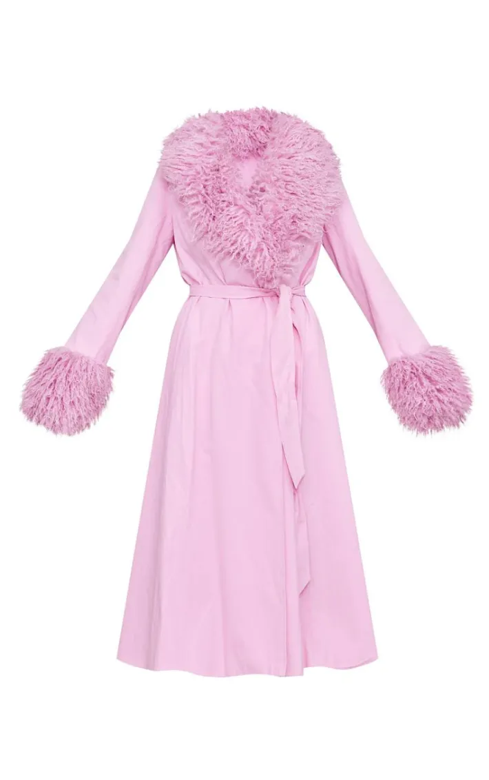 Look on-point no matter the occasion with this pink faux fur contrast collar self tie maxi coat. Its cosy faux fur and front tie make it the perfect maxi coat for cosy season walks or grabbing coffee. Team with knee high boots and chunky jewelry to channel the ultimate confidence and glam vibes.