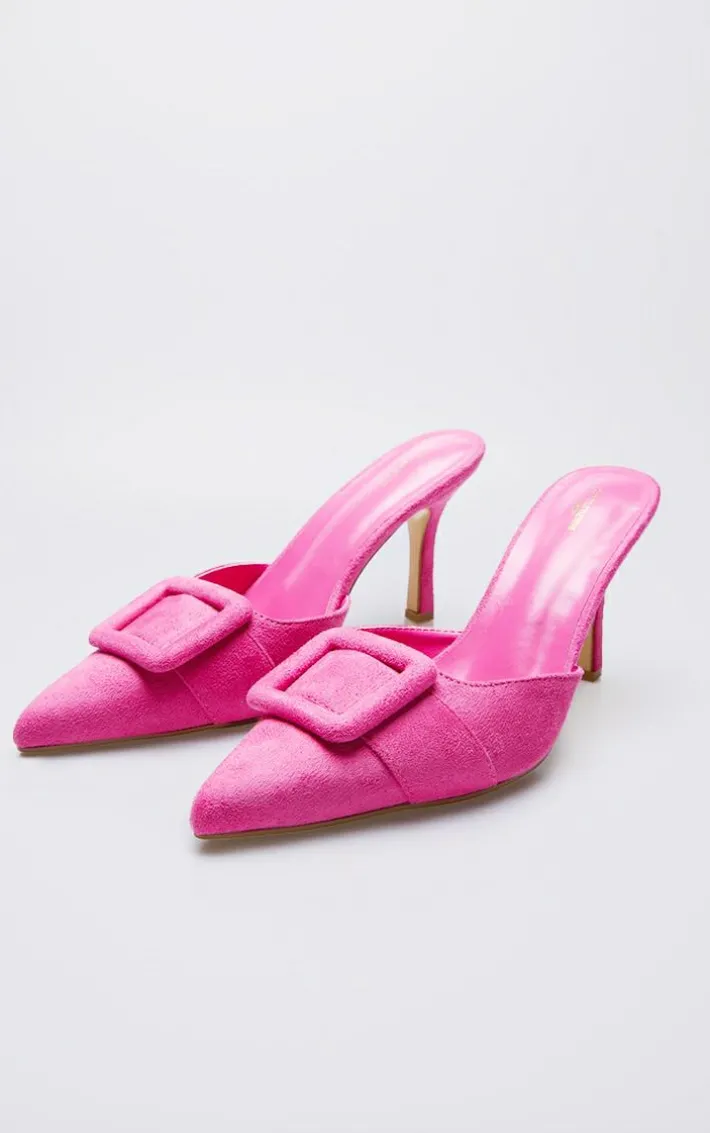 Get ready to add a pop of pink to your new season wardrobe with these pink faux suede wide fit buckle point toe heeled mules. Brought to you in a pink hue faux suede material with a wide fit design, apoint toe and buckle detailing, how can you not fall in love? Just add these heeled mules to any look for the perfect finishing touch.