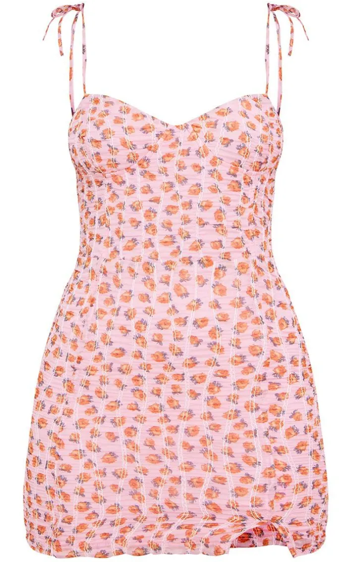 This dress is a must-have for the new season. Featuring a pink floral chiffon material with a cup detail, tie strap fastening and bodycon fit, we are obsessed. Pair with slip on sandals and hoops for a next-level finish.