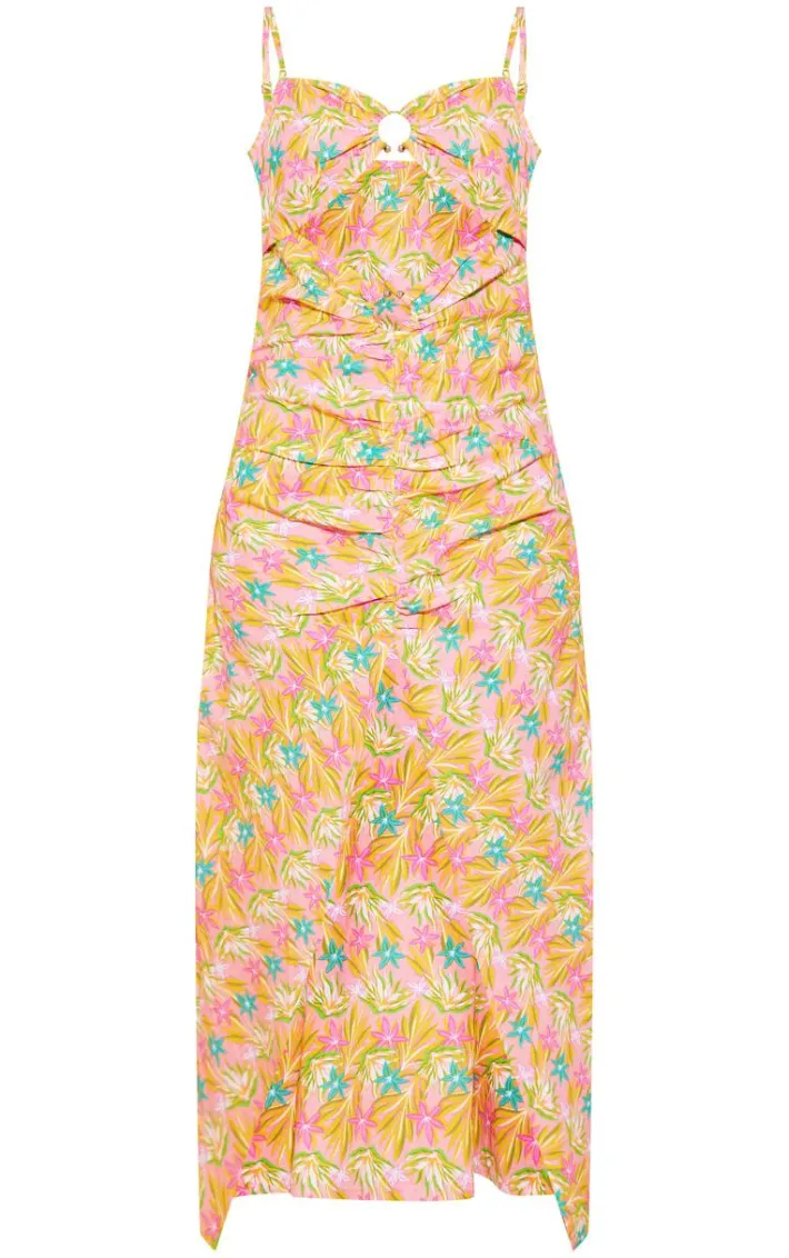 Stand out from the crowd in this pink floral print linen look trim detail cut out maxi dress. Brought to you in a pink hue linen look material with a dreamy floral print design, trim detailing and a maxi length, how can you not fall in love? Style this maxi dress with sandals and gold accessories for a look we just can’t get enough of.
