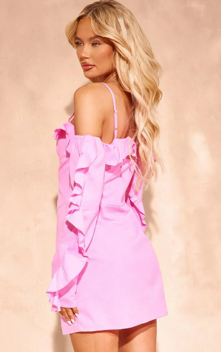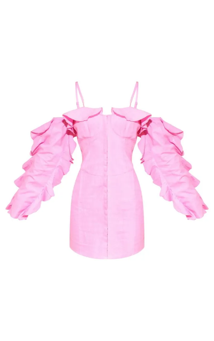 Add some bold hues to your wardrobe this season with this pink linen look frill bardot bodycon dress and be sure to always stand out from the crowd. Brought to you in a pink linen look material with a frill design and a figure-flattering fit, how could you not be in love? This bodycon dress is the ultimate styling staple and we know you won’t be able to resist adding it to your basket. Team with high heels and accessories for a look that everyone will want.