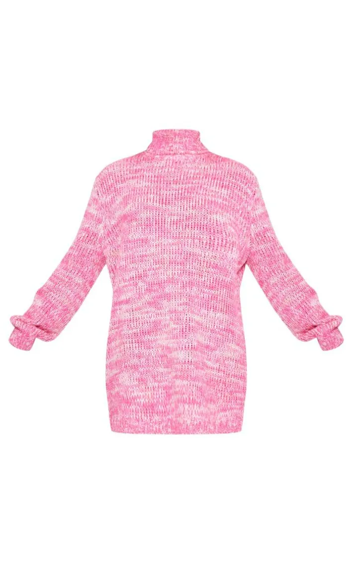 Add some drama into your weekend wardrobe with this pink marl chunky knit roll neck sweater dress. Brought to you in a pink marl knit material with a roll neck design, you’re sure to have all eyes on you. To complete the look, style with some knee high boots and gold hoops for a date night look.