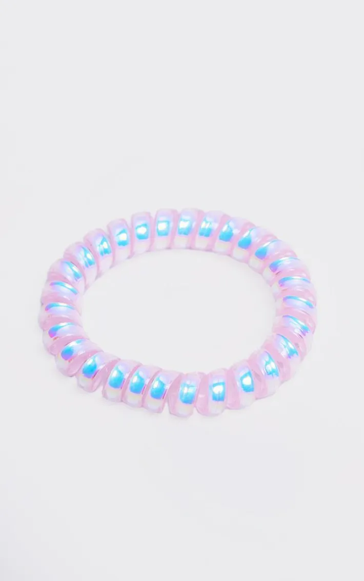 You’re in need of this pink pearlescent spiral hair tie multipack. Brought to you in a pink pearlescent material with a spiral design, these hair ties are at the top of our wish list. Pair with any outfit of the day to give it that extra added glam. You’ll look unreal.