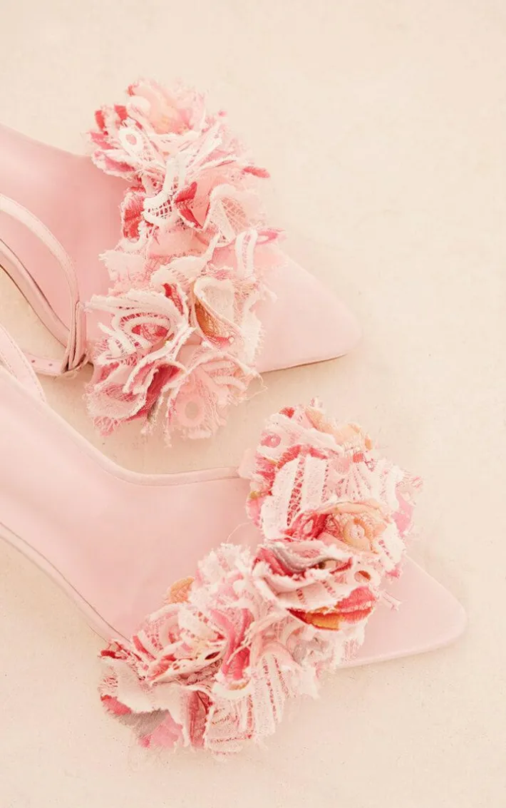 Step out in style with these pink pointed toe barely there petal detail high heeled sandals. These sandals are brought to you in a pink hue with a pointed toe, a petal detail and a barely there strap, how could you resist these? These heels are calling your name. Simply style with your outfit of the day for a glam finish.