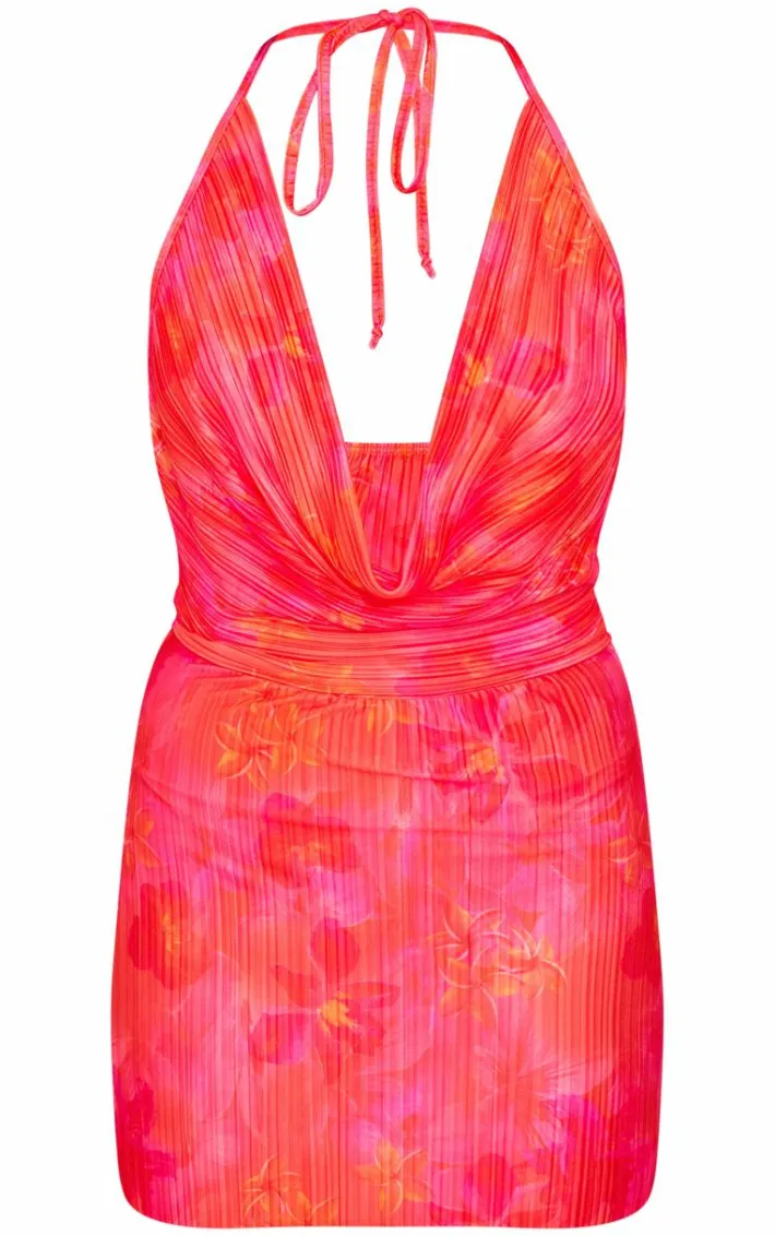 Inject some serious must-have print in your wardrobe this season with this pink printed plisse cowl neck mini dress. Brought to you in a pink printed plisse material with a cowl neck design and mini length, how can you resist? Style this unreal mini dress with gold heels, a beach bag and gold accessories for a combo we’re crushing on.