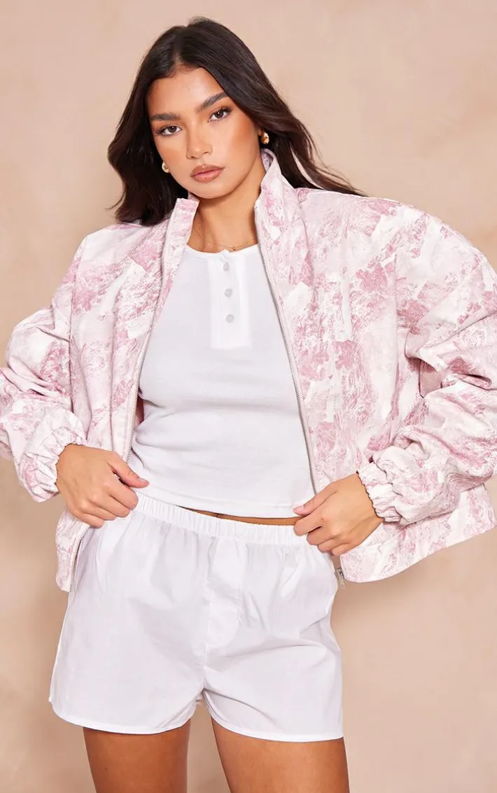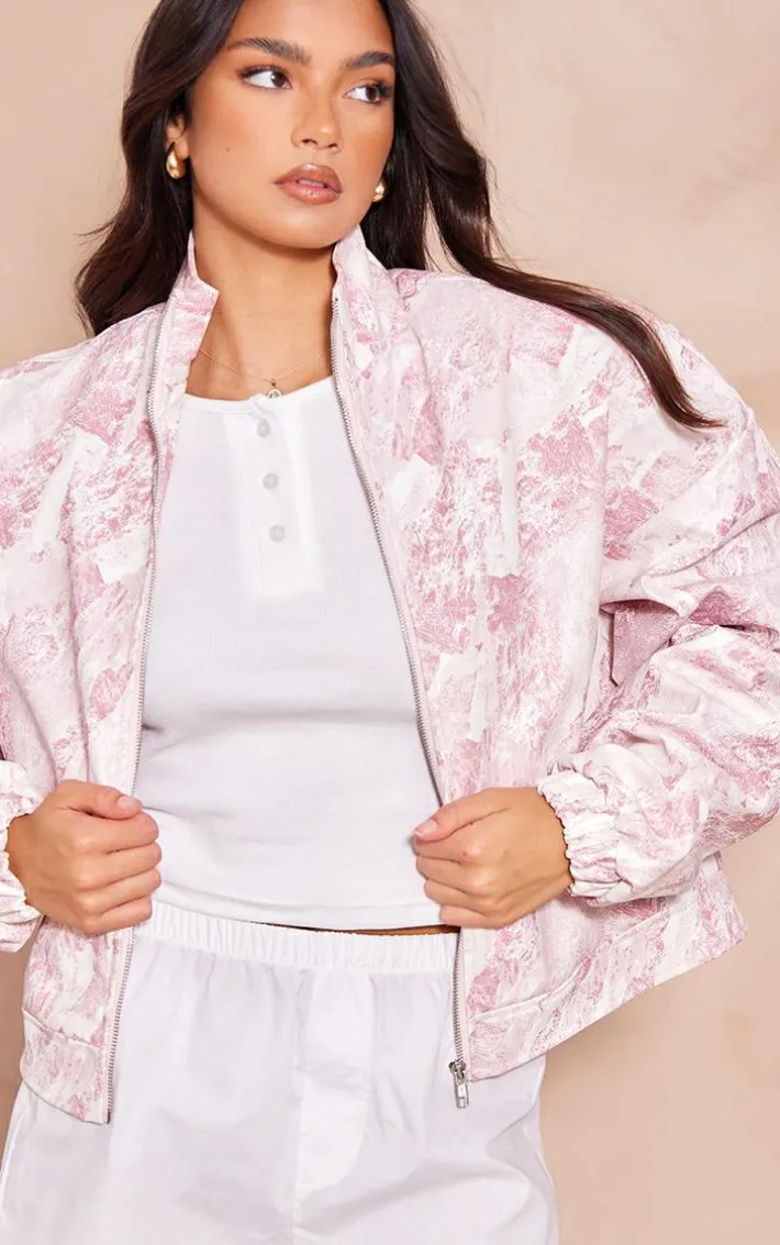 Get ready to have all eyes on you with this pink printed textured faux leather oversized bomber jacket. Brought to you in a pink faux leather material with a textured design and an oversized fit, what’snot to love? This bomber jacket is sure to earn you all the likes instantly. Finish off the look by pairing this with the matching bottoms and a cropped tee. It’s a yes from us.