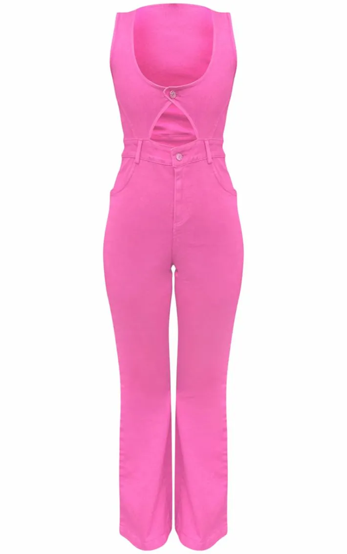 Add a pop of pink into your look with this pink sleeveless cut out straight leg jumpsuit. This jumpsuit is brought to you in a pink material with a cut-out design, a straight leg fit and sleeveless style, how could you turn this down? This jumpsuit is calling your name. Complete the look by styling this with high heels and accessories for a flawless finish.