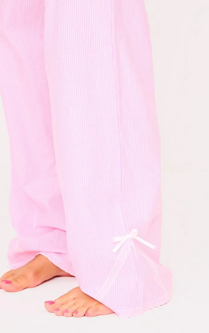 Give your pajama collection the upgrade it deserves with this pink stripe croissant bow long pant lace detail set. This set includes a t-shirt with a croissant bow design and matching striped pants, we are in love? Style this pink set with fluffy slippers for the perfect night in outfit.