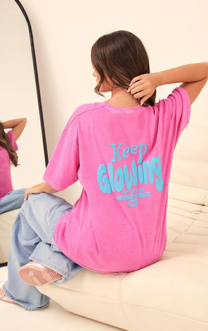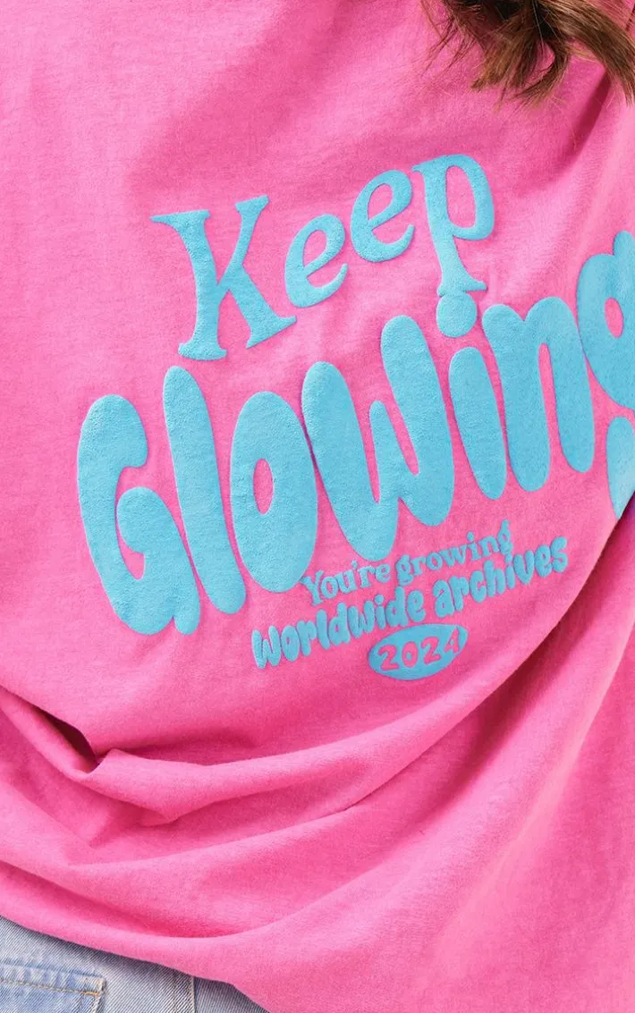 Take your chilled days on in style with this pink washed keep glowing print t shirt. Brought to you in a pink washed material with a ‘Keep Glowing’ back print and a relaxed fit, we can’t stop crushing on this t shirt. To complete the look pair this with sweatpants, box-fresh kicks and your everyday essentials. It’s a yes from us.