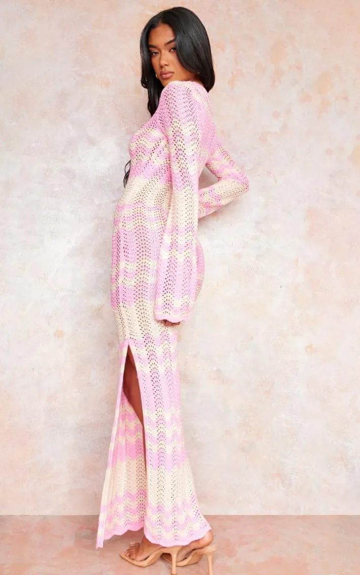 Dare to stand out from the crowd in this dreamy pink wave knit textured long sleeve maxi dress. With a pink wave knit textured material with long sleeves and a maxi length, you’re sure to be earning all the compliments in this maxi dress. Just add high heels and accessories for a look that is totally on trend.
