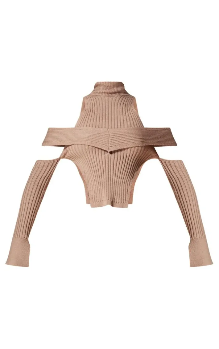 Inject all the luxe vibes into your wardrobe with this PLT label taupe cut out knitted long sleeve top. Its taupe knitted material is calling out to all our neutral-loving s and its cut-out design gives you that weekend-worthy touch. This long sleeve top is sure to steal all the stares and gain all the compliments which we know you can’t resist. Team with a mini skirt and court heels for a flawless finish.