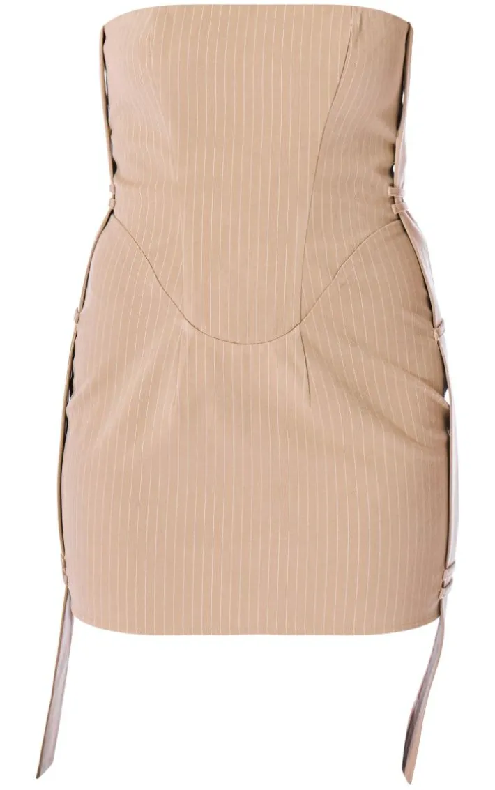 Become the center of attention this weekend with this PrettyLittleThing label taupe pinstripe bardot corset bodycon dress. Made from a taupe pinstripe hue material with a bardot neckline and a corset design, why wouldn’t you be obsessed? Here to bring all the chic vibes and nail the glam dress code, this PLT label bodycon dress is a yes from us. Team with clear heels, gold accessories and a mini bag for a flawless finish.