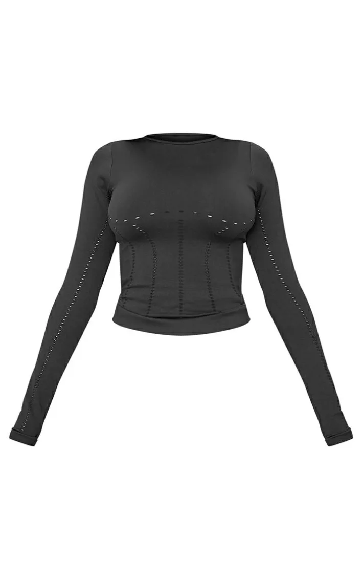 Hit the gym in style this season with this PLT Sport black seamless laser cut long gym top. Brought to you in a black seamless material with laser cut out detail and long sleeves, what more could you ask for? If you’re looking to take your gym wear collection to the next level, this gym top is a yes from us. Team with the matching shorts, a hoodie, chunky sneakers and a bold baseball cap for a look that won’t go unnoticed.