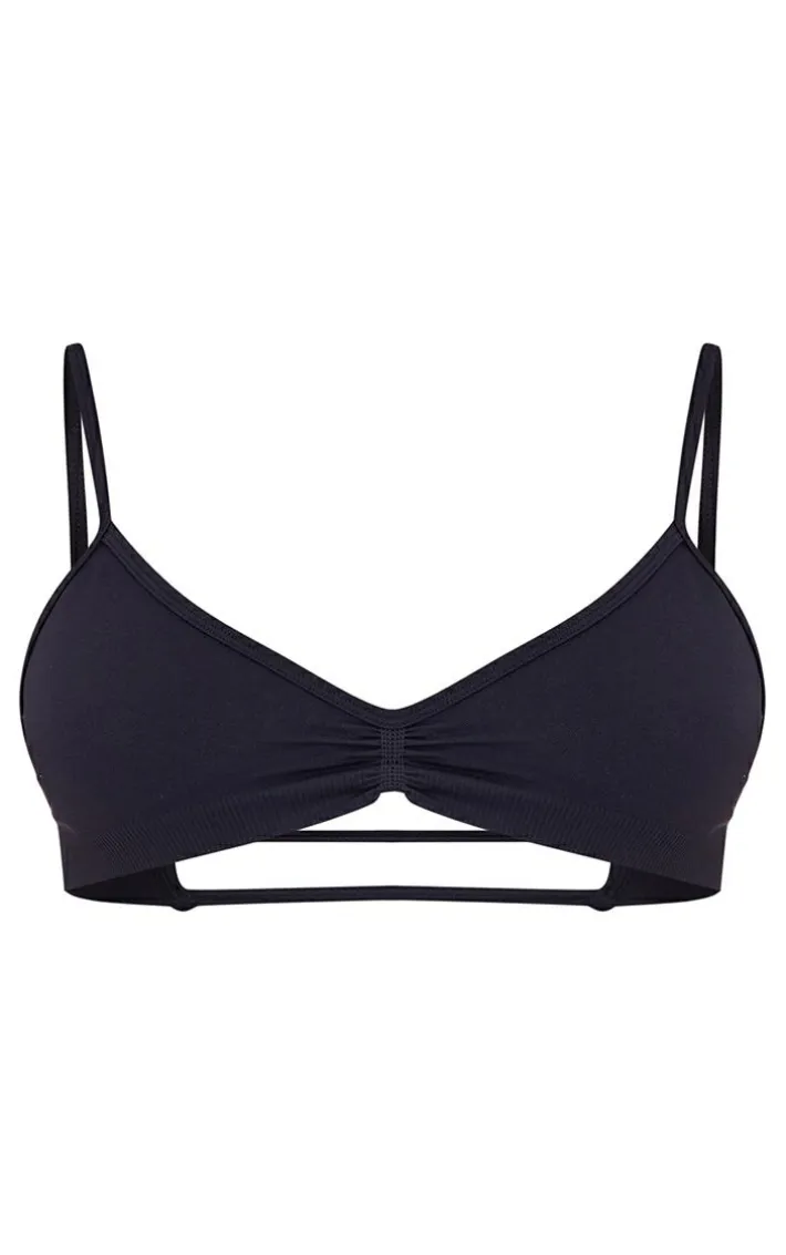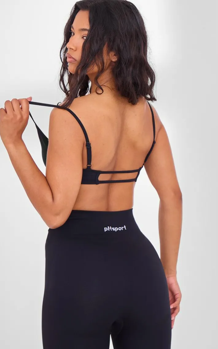 This PLT Sport black seamless twist front sports bra is sure to be a staple in your workout wardrobe. Brought to you in a black material with a twist front design and a comfy seamless fit, what more could you want? Team this black sports bra with the matching leggings and sneakers for a look you will be reaching for again and again.