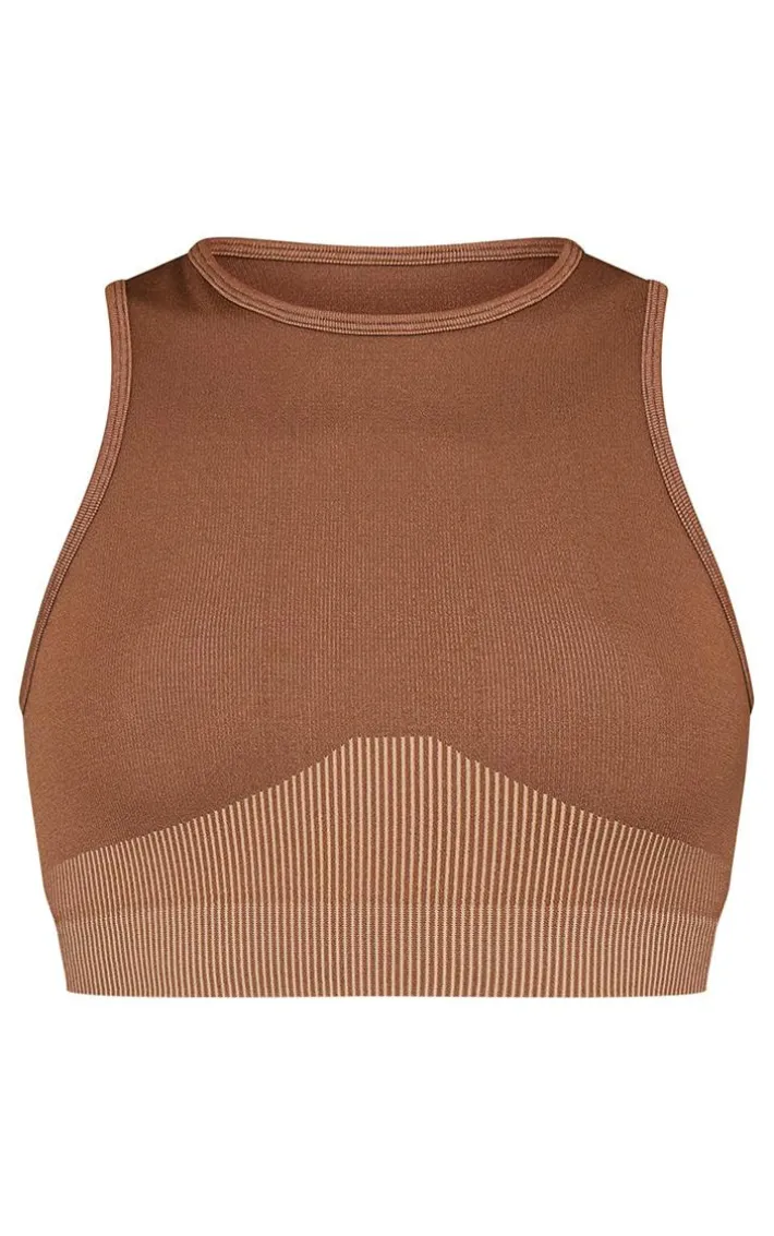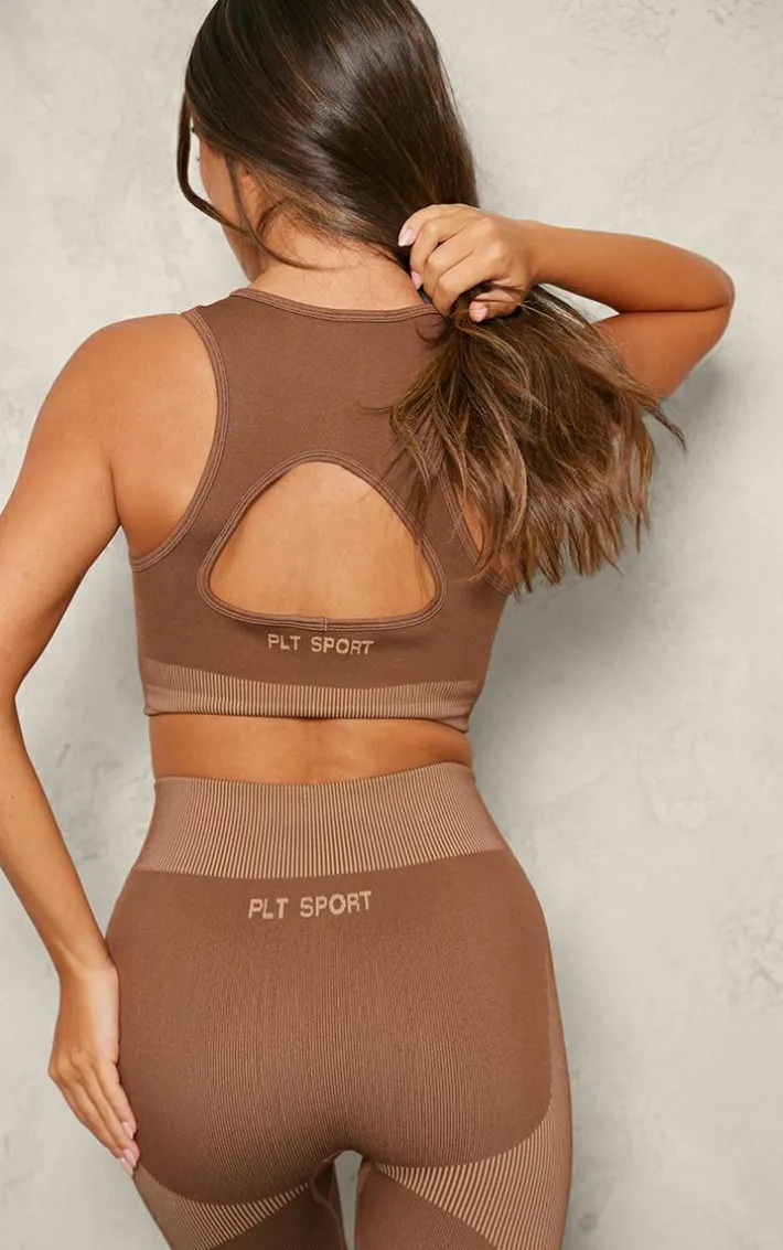 Get your sweat on in this PLT Sport brown jacquard seamless open back racer neck top. Brought to you in a brown hue jacquard seamless material with an open back and racer neck detail, this top is at the top of our wish list. Style with the matching leggings, box fresh kicks and simple accessories to steal all the stares at your next work out.