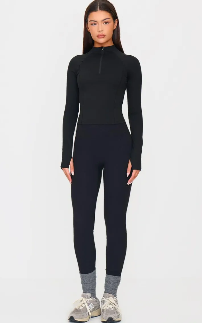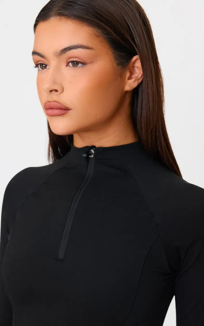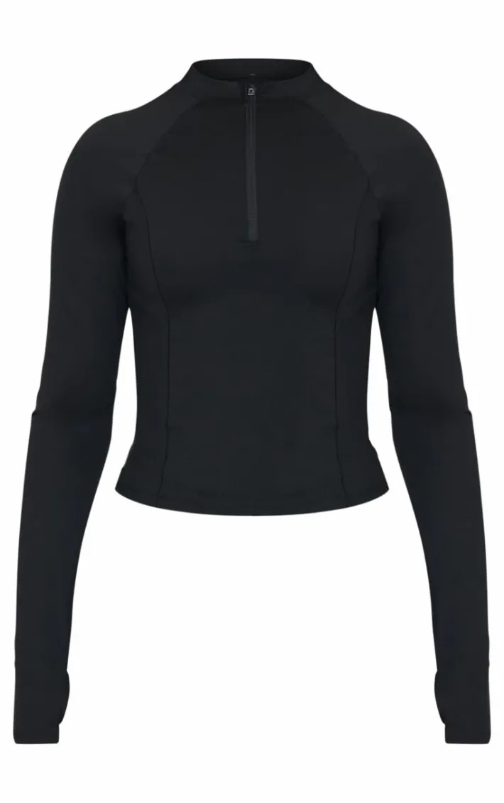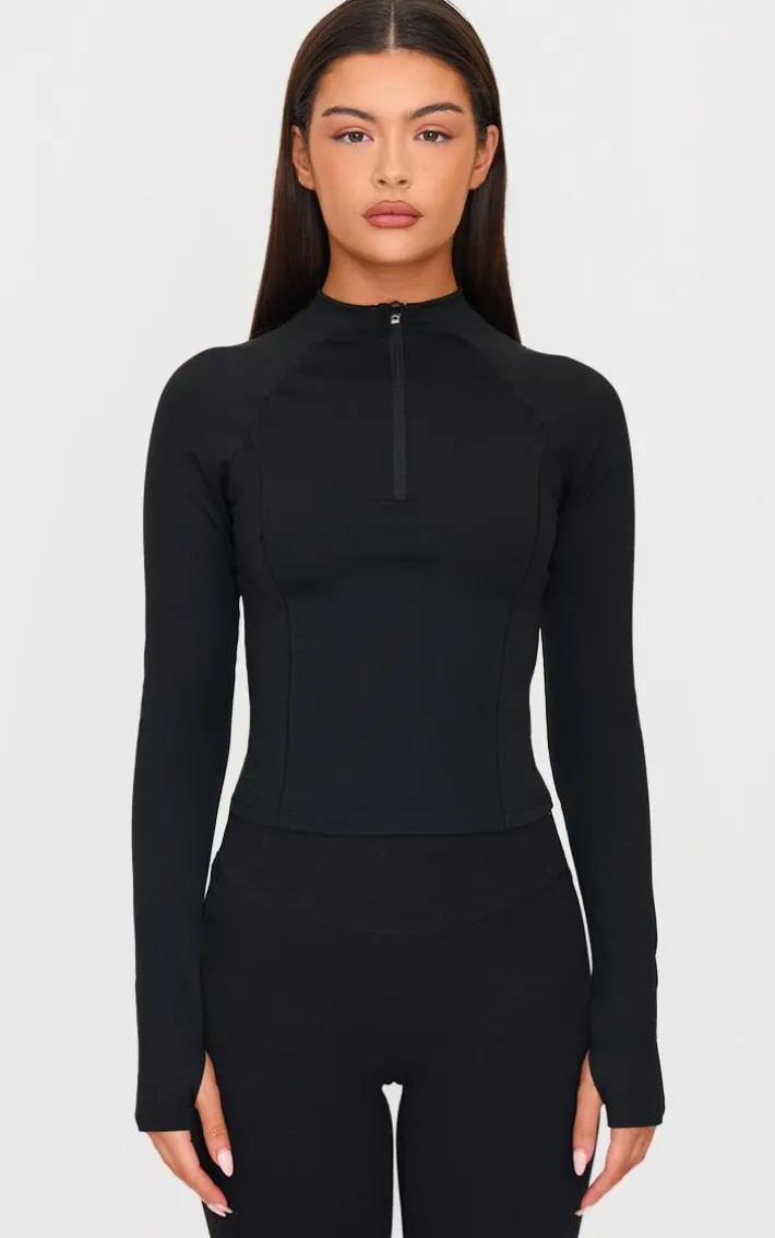 This PLT Sport deep black sculpt quarter zip gym top is sure to give a figure-flattering finish. Brought to you in a must have deep black shade, with a sculpt design and quarter zip feature, how can you say no? Team with a pair of leggings and white hue sneakers for a look like no other.