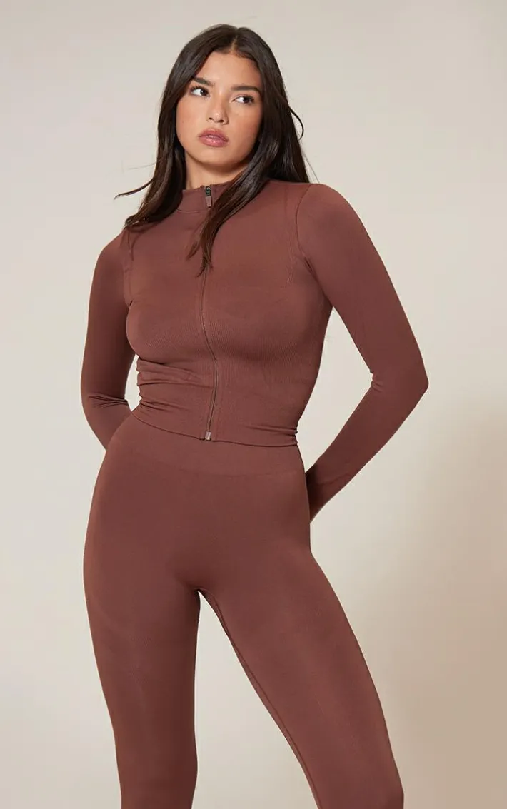 We’re totally obsessed with this PLT Sport espresso seamless bust panel zip up jacket for your new season wardrobe. Made from an espresso seamless material with bust panel and a zip up fastening, how could you not be in love? This jacket is perfect for taking you from the gym to brunch. Simply add the matching leggings, chunky kicks and everyday accessories for a fool-proof finish.