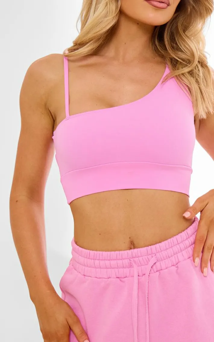Give your activewear wardrobe the chic upgrade it deserves with this PLT Sport hot pink sculpt asymmetric sports bra, we’re in love. This sports bra features a hot pink material with an asymmetric design and a figure-flattering fit. Team with the matching shorts, sneakers and simple accessories to elevate the look further.