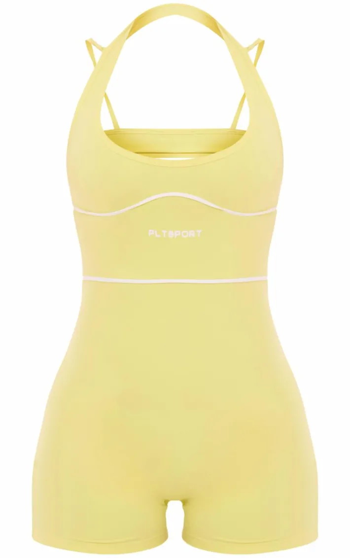 Amp up your gym game with this lemon PLT Sport sculpt halterneck strappy back unitard. Brought to you in a lemon sculpt material with a halterneck design, strappy styling and ‘PLT Sport’ print, you can’t say no to this. Simply style with box fresh kicks and accessories for the ultimate workout vibe.