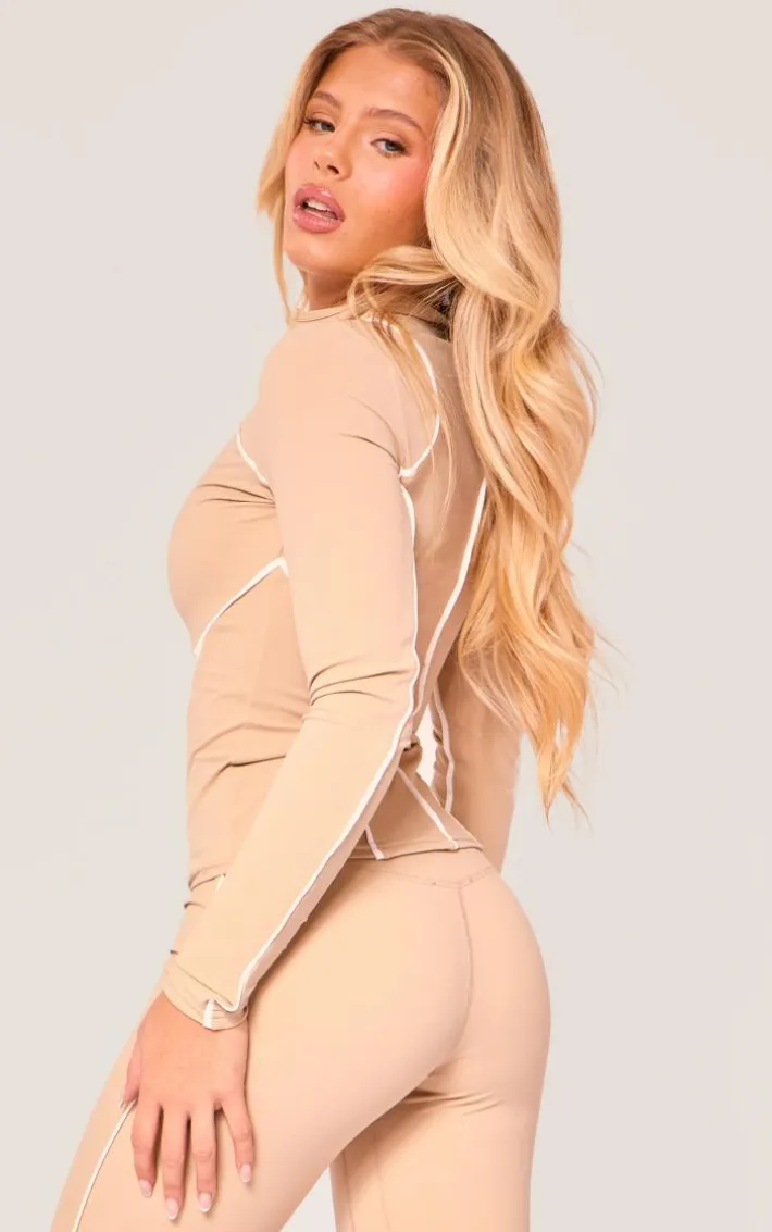 Make room in your wardrobe for this unreal PLT sport mocha sculpt contrast seam gym jacket, it’s a definite yes from us for your next workout session and beyond. This jacket features a mocha hue sculpting material with contrast seam detailing and a zip front design, what more could you want? Team with the matching leggings, sneakers and your go to accessories for a look you’ll be reaching for again and again.