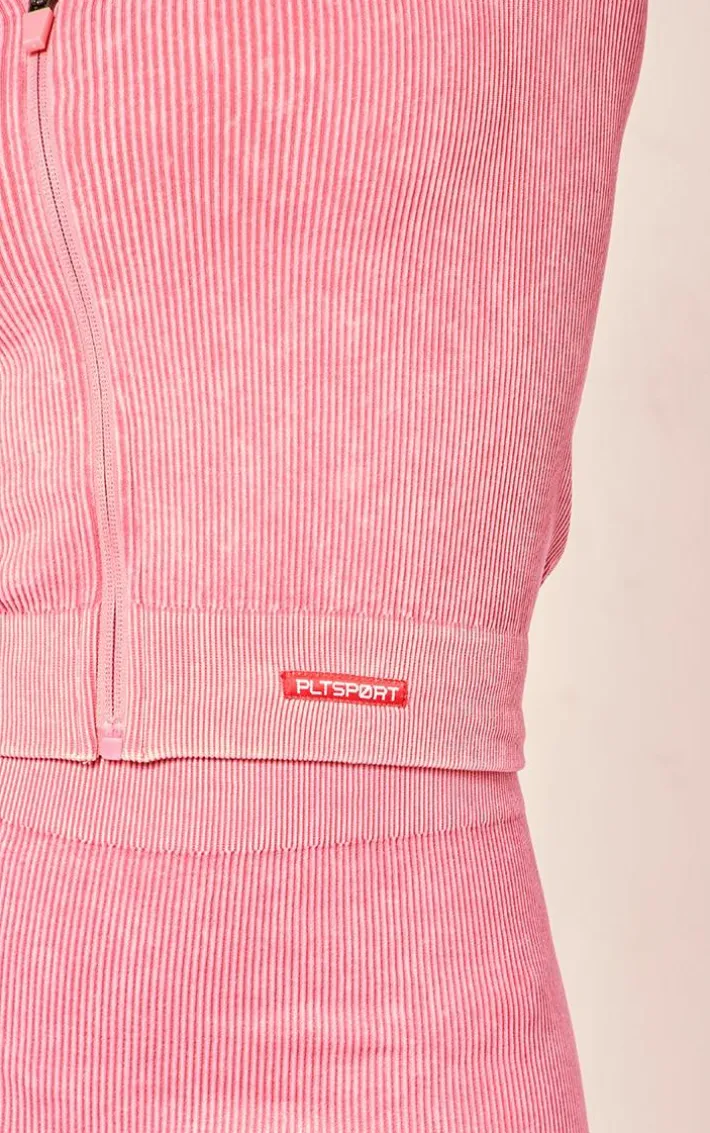 Switch up your workout style game with this PLT Sport raspberry acid wash seamless zip up cropped sports jacket. Brought to you in a raspberry hue acid wash material with a zip up design, long sleeves and a seamless fit, how can you go wrong? Team this cropped sports jacket with the matching shorts and sneakers for a look that is sure to make heads turn wherever you go.