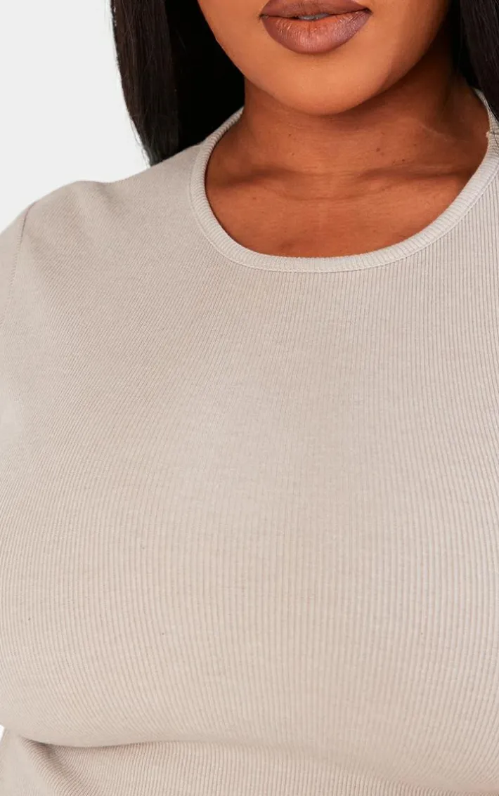 Your new season wardrobe wouldn’t be complete without this plus ash grey basic rib short sleeve crop top, we just can’t get enough. This plus top features an ash grey ribbed material with short sleeves and a flattering cropped length. Team this ribbed top with cuffed sweatpants, sneakers and a shoulder bag for a fresh finish.
