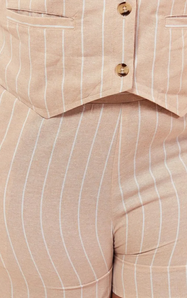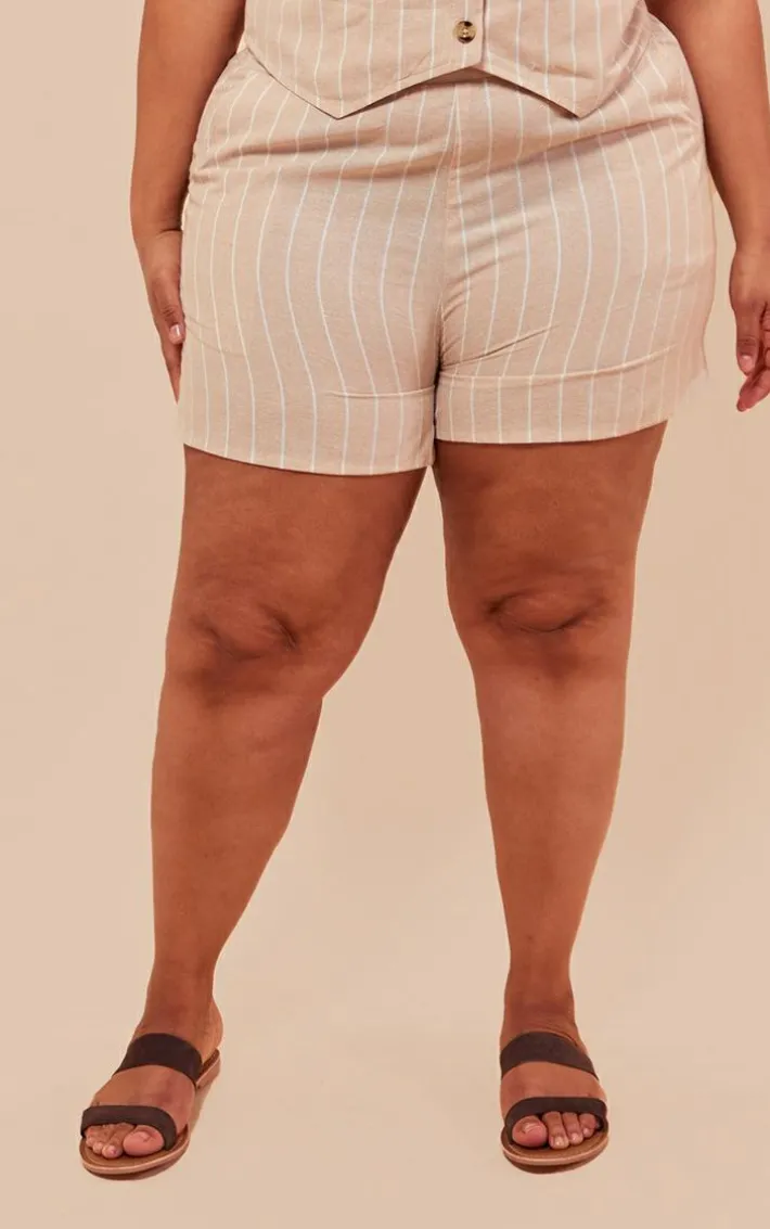 Make sure your new season look stays on points with these plus beige linen look striped tailored floaty shorts. Brought to you in a beige linen look material with a striped design and a flattering tailored fit, what more could you ask for? Style these beige shorts with the matching vest, sandals and sunglasses for a simple yet chic everyday look we’re loving.