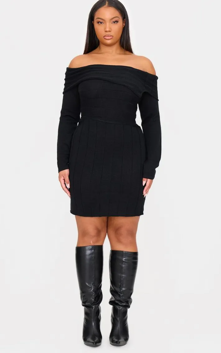 This plus black asymmetric knit fold over mini dress is a must have staple in your wardrobe. Brought to you in a classic black hue, with a cosy knit material and asymmetric fold over design, what’s not to love? Style with a pair of knee length boots and simple accessories for a look like no other.