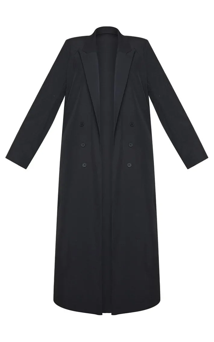 Take any look the extra mile with this blazer. Featuring a black material with button detailing and a maxi length, what’s not to love? Style over your outfit of the day to finish the look.