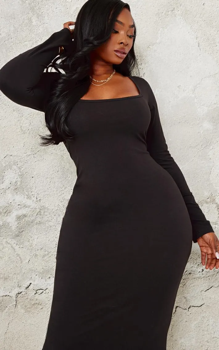 Deciding what to wear just got easier with this plus black cotton square neck maxi dress. Brought to you in a black hue cotton material with a square neckline, this maxi dress is a must have. How can you resist? Style with slip on heels and simple accessories for a chic finish we’re loving.
