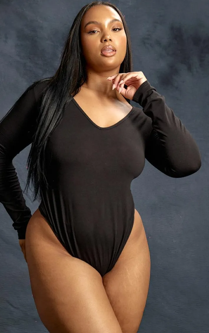 Give your everyday basics collection a serious update for the new season starting with this plus black cotton V neck long sleeve bodysuit. Brought to you in a black hue cotton material with a V neckline, long sleeves and a flattering fit, how can you say no? Style this plus bodysuit with ripped jeans and sneakers, for a simple yet chic everyday look we just can’t get enough of.