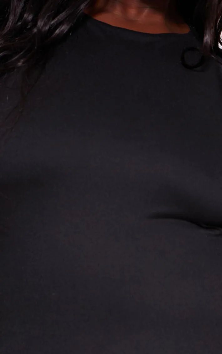 Make weekend styling look effortlessly chic in this plus black double contour racer neck bodycon dress. Brought to you in a black double contour material with a racer neck design and a flattering bodycon fit, what more could you want? Style this bodycon dress with heels and a bold hue mini bag for a simple yet chic look we’re loving.