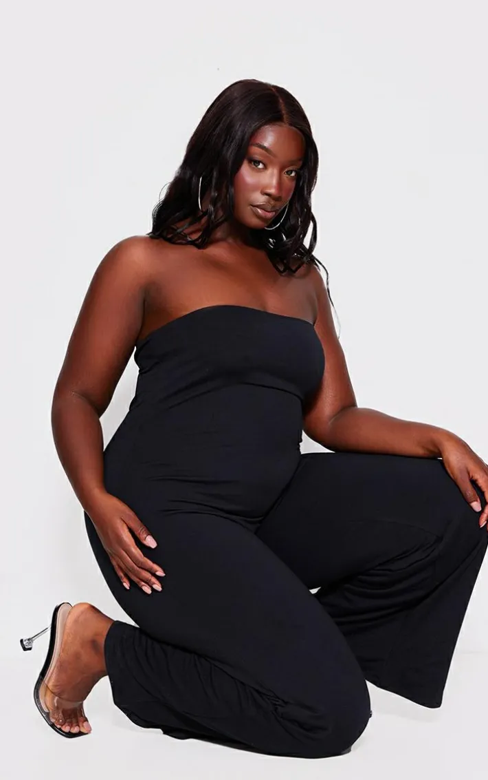 Get your glam on with this plus black double layer contour jersey bandeau wide leg jumpsuit. Brought to you in a black jersey material with a bandeau wide leg design giving you a flattering fit like no other. You are sure to feel confident in this plus jumpsuit. Team with your fave heels and accessories for an Insta worthy finish.