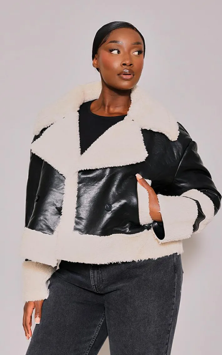 Get your new season look on point with this plus black faux leather faux fur trim coat. Brought to you in a black hue faux leather material with a faux fur trim for those extra cosy feels and a cropped fit, you really can’t go wrong. Layer this faux leather coat seamlessly over your outfit of the day to take your look to awhole new level.