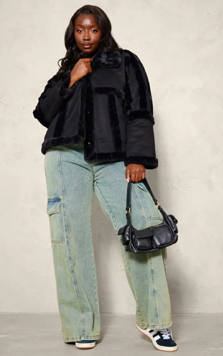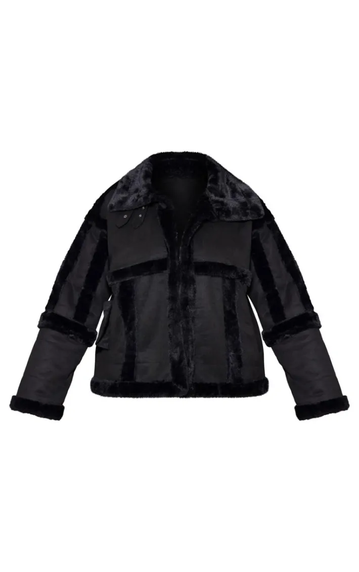Nail all the new season trends with this plus black faux suede fur trim aviator doll. Its black faux suede material adds an instant luxe touch to your outfit of the day and its fur trim brings all the glam vibes. This plus aviator coat is everything you’re looking for any more this season and we know you won’t be able to say no to adding it to your basket. Team with a relaxed ‘fit and comfy boots for a flawless finish.