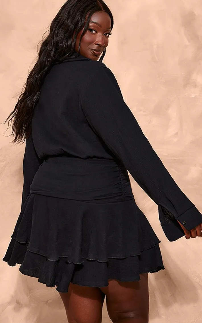 Set major trends this season with this plus black oversized shirt frill detail shift dress. Brought to you in a black material with an oversized fit and a frill detail, what more could you want ? This shirt shift dress will have you feeling effortlessly chic all season long. Team with your fave accessories and a pair of slip-on sandals for a fool proof finish we are obsessing over.