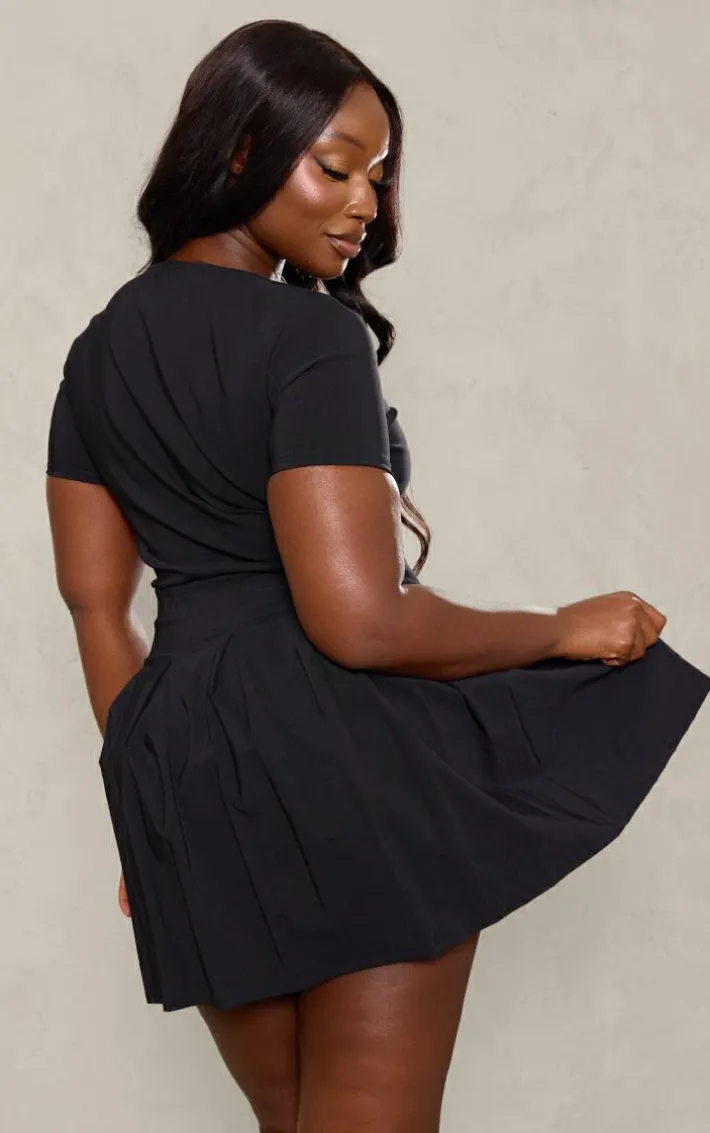 Take on your weekend the right way with this statement plus black pleat hem detail tailored mini dress. Made from a black material with a pleat hem and a tailored design, this is everything we’re loving and more. With it’s flattering fit this mini dress is sure to hug you in all the right places. To complete the look style this seamlessly with a pair of sneakers and your fave accessories for a look that will secure you all the likes.