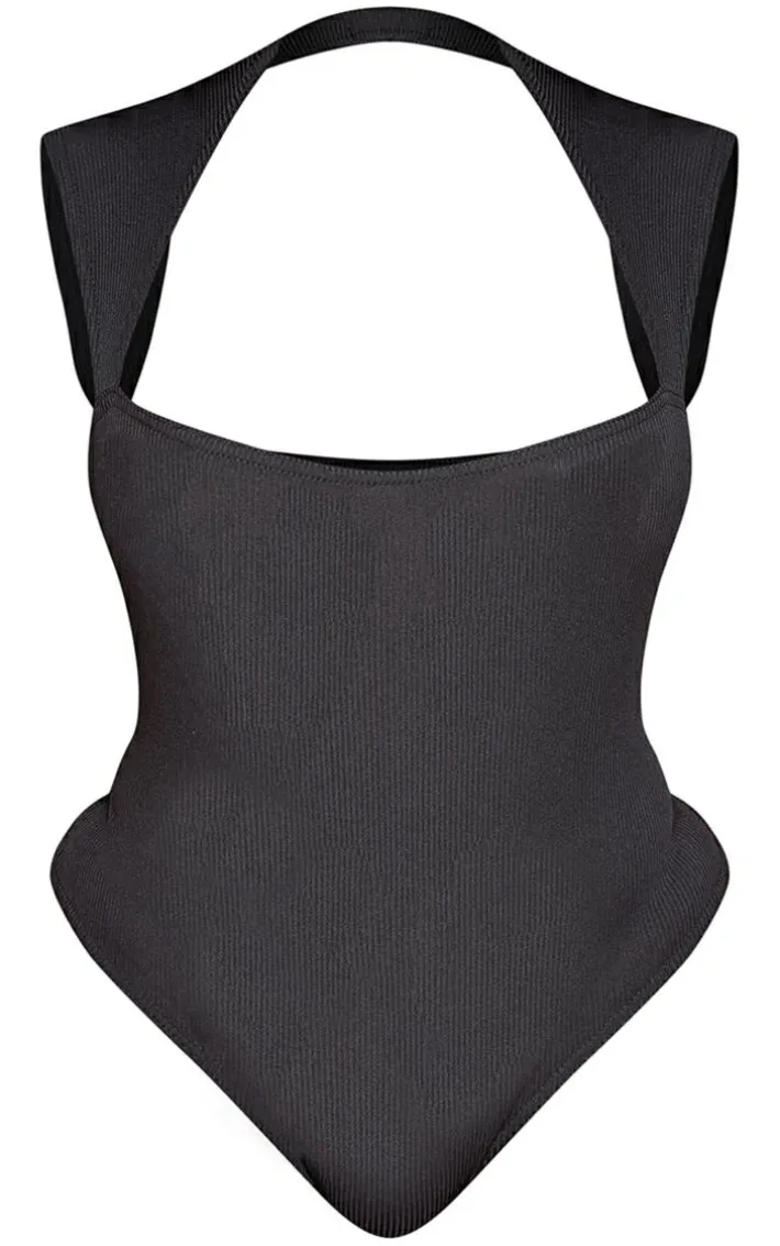 Say hello to your new season staple with this plus black rib cut out bodysuit. This bodysuit is brought to you in a black ribbed material with a cut-out design, how could you say no? From day to night this bodysuit will have you looking totally on-trend. Style effortlessly with stone jeans, high heels and gold accessories for a look that will turn heads for all the right reasons.