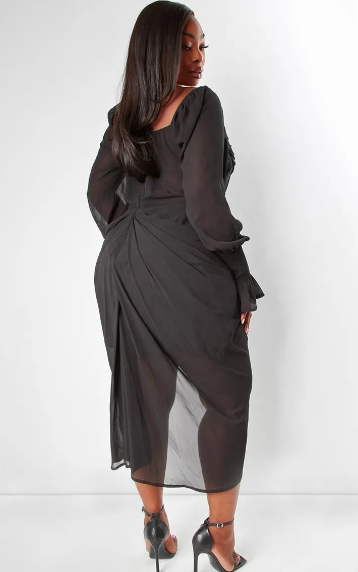 Look all kinds of chic in this plus black satin insert draped chiffon midi dress. Brought to you in a black hue chiffon material with a satin insert design, long sleeves and a flattering midi fit, how can you resist? Style this black dress with heels and gold accessories for a look they won’t be able to take their eyes off.