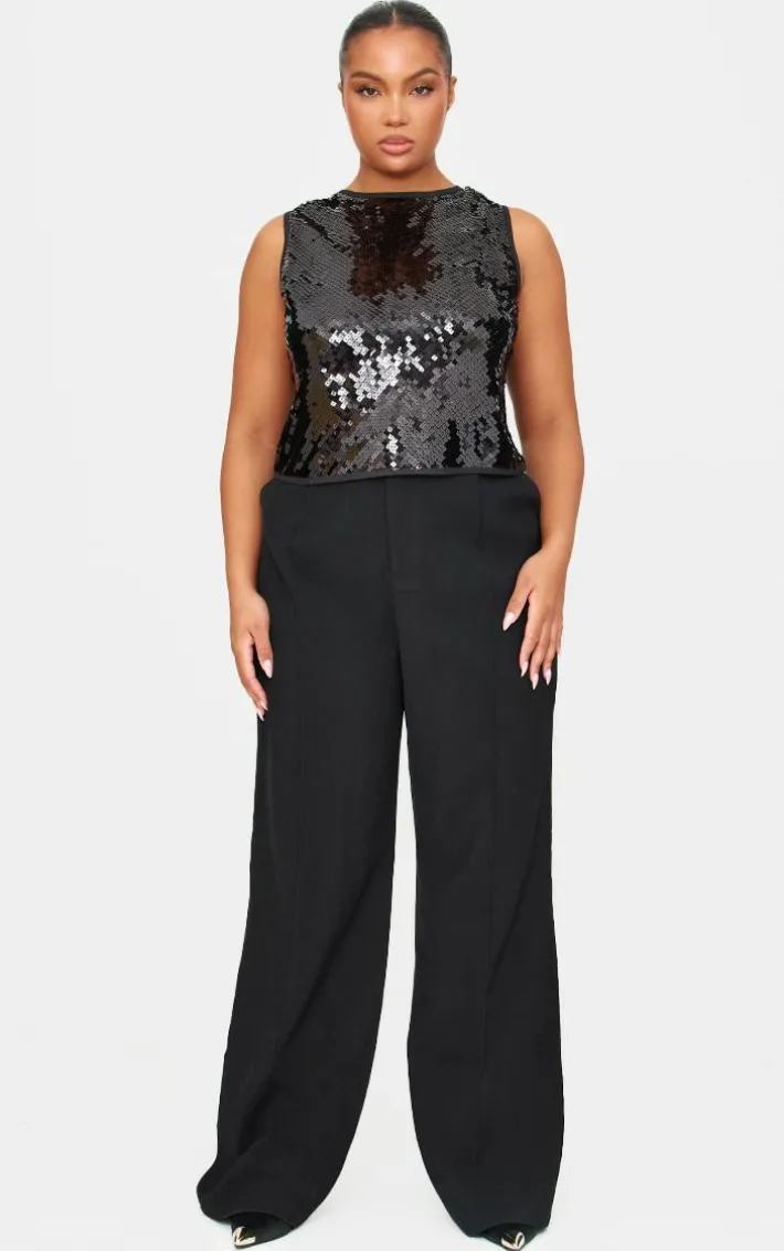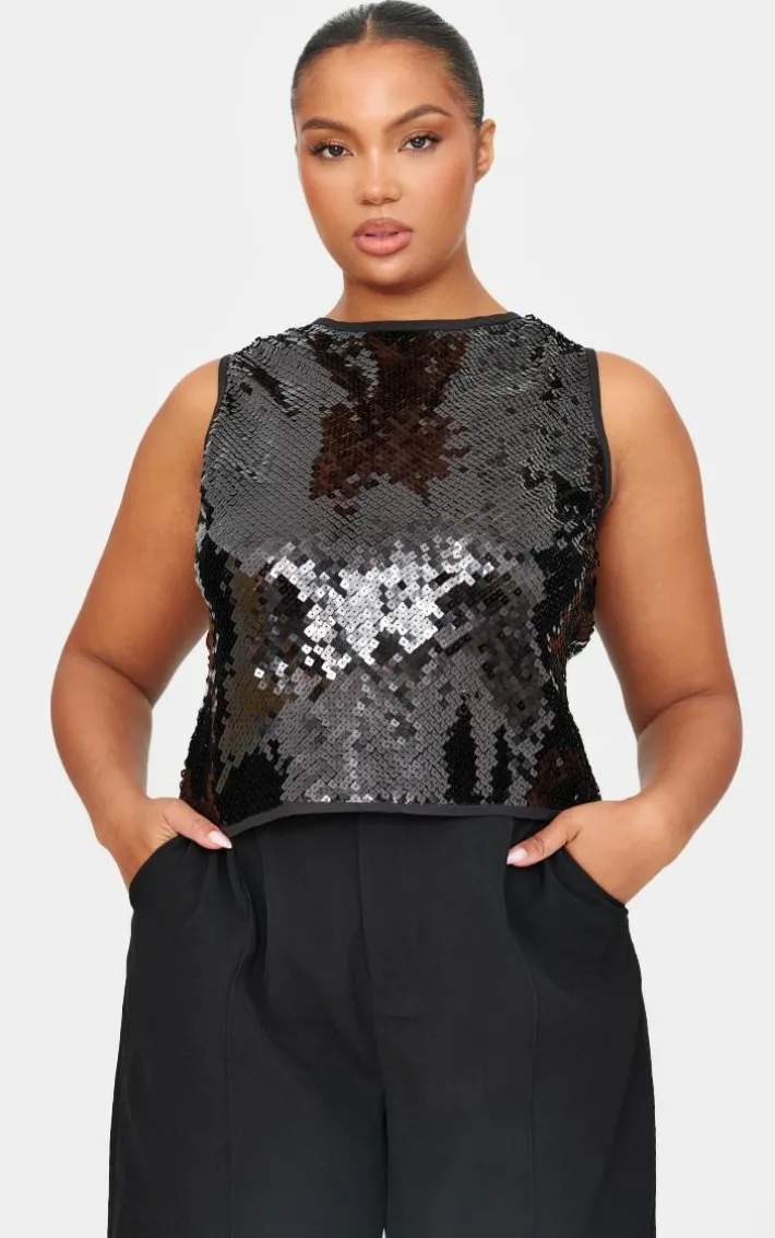 Your wardrobe is about to be elevated with this plus black sequin sleeveless long top. Brought to you in a black hue material with a sequin design and sleeveless detail, this long top is a must have for all occasions. Team with a mini skirt, slip on heels and gold accessories for a chic finish that won’t go unnoticed.