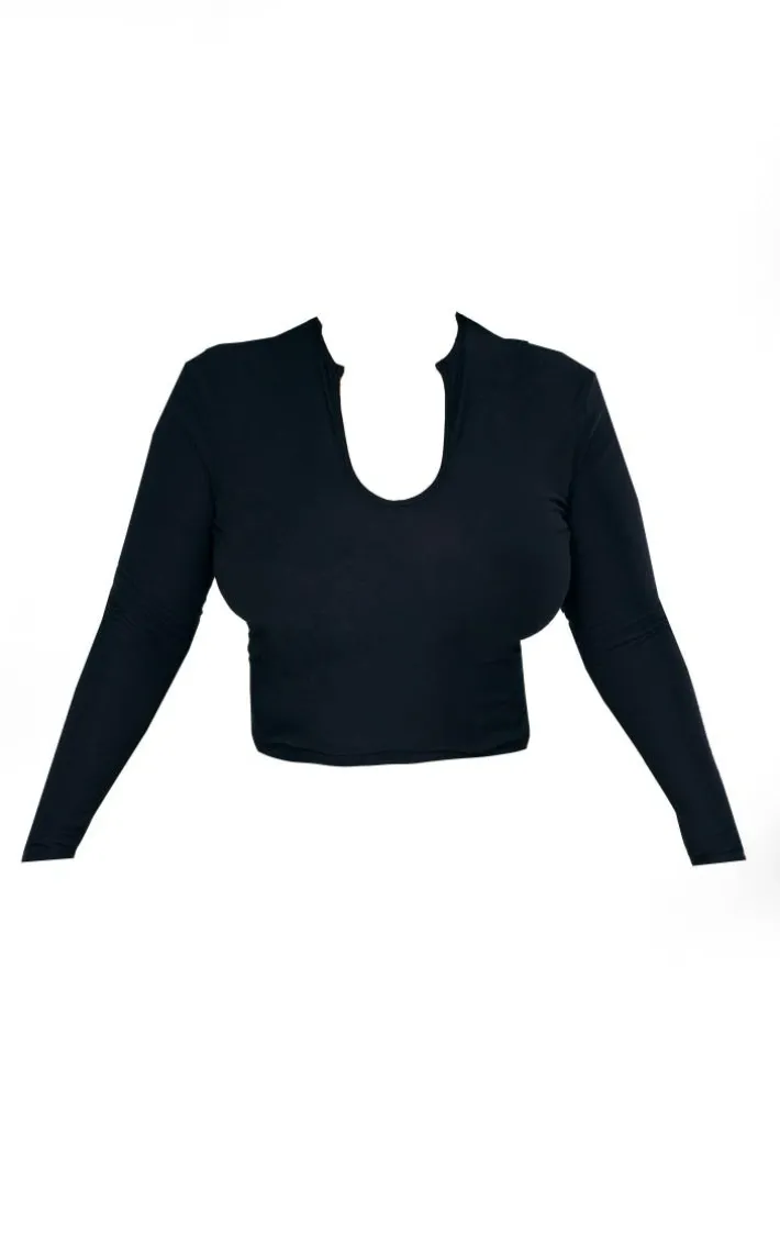 Level up your basics collection with this plus back soft touch V neck long sleeve top. This versatile women’s top will suit all occasions from day to night. Made using a black soft touch material with a V neck and a figure-flattering fit that will earn you all the right attention, what more could you ask for? Wear with cargo pants, fresh sneakers, a shoulder bag and simple accessories for the perfect everyday fit that will get everyone talking.