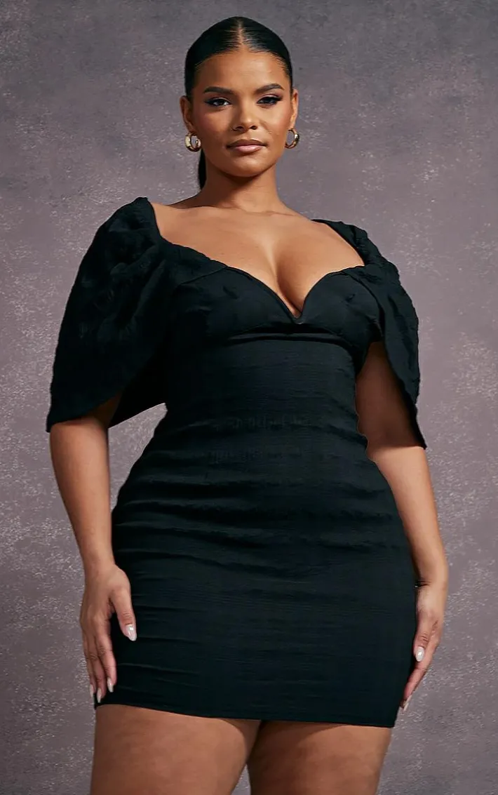 Have heads turning for the right reasons in this statement plus black textured v bar bodycon dress. This unreal dress will make heads turn at your next occasion. This dress features a black textured material for a fiercely feminine look we love. With aV bar detail and a bodycon fit, we are obsessed. Team with some clear heels and a statement clutch to finish off this effortlessly chic look that will make them stop and stare.