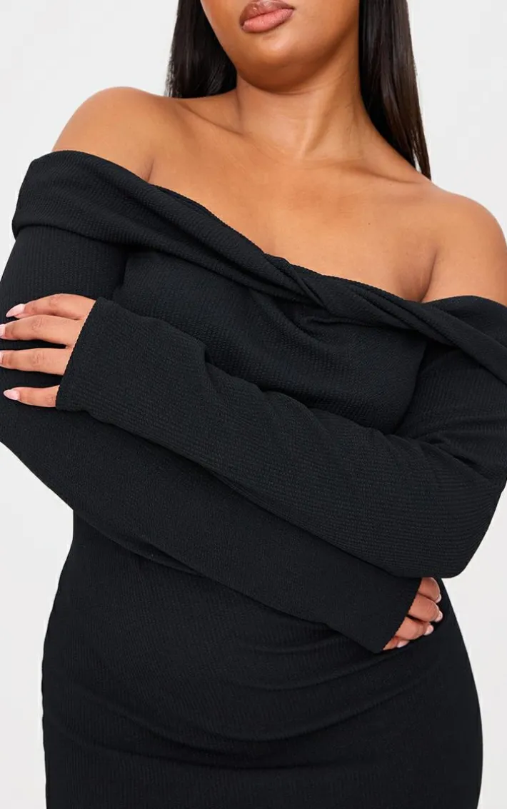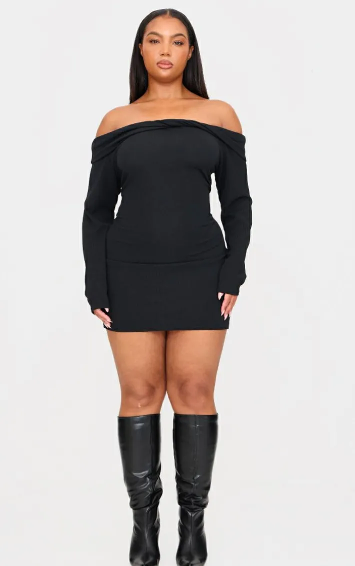 Make styling look effortless with this plus black twist front bardot ribbed mini dress. Brought to you in a black hue ribbed material with a twist front design and a bardot neckline, what’s not to love? Style this mini dress with knee length boots and gold accessories for a simple yet chic look like no other.